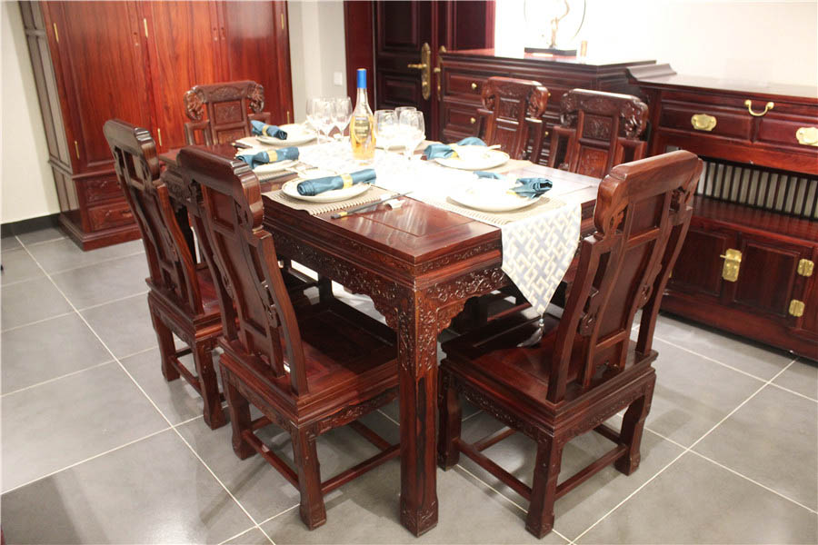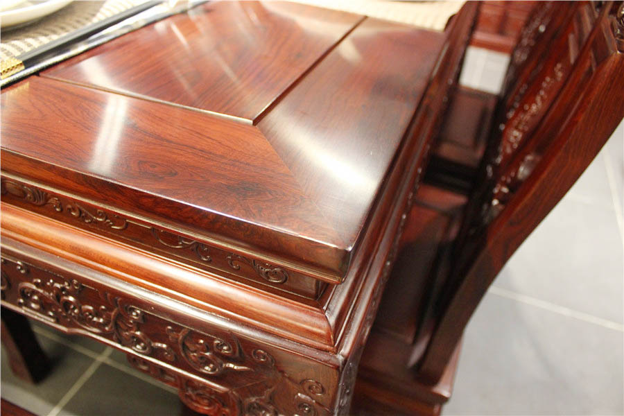 桌边的雕花大气优雅,每个斑纹都是精雕细琢,机械结合手工,传统结合现代,美满融合 。